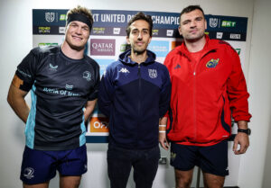Josh van der Flier, Filippo Russo and Tadhg Beirne at the coin toss 18/10/2025