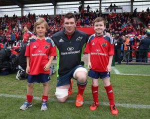 Peter OÕMahony with mascots Oisin Buckley and James Geaney 25/4/2015