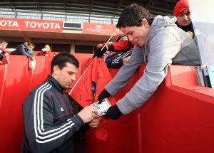 Denis Leamy signs autographes for fans at training today